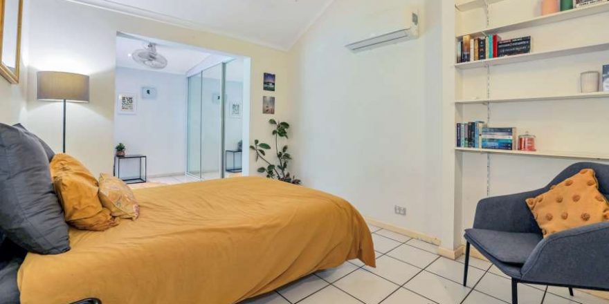 The second dwelling (2 x 2) also includes open plan living and dining areas with an island bench in the kitchen and A/C of course along with a home office space. There are two bedrooms here each with a robe and A/C and the bathroom with dual access and linen closet. This home includes 2 bathrooms with an outdoor shower and laundry room along with entertaining space and parking as well.