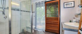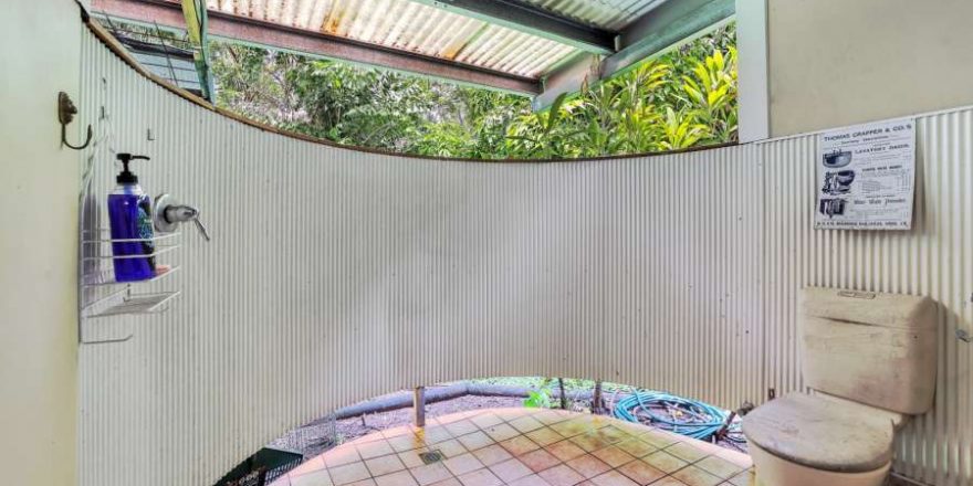 • Outdoor shower in the second home has resort vibes