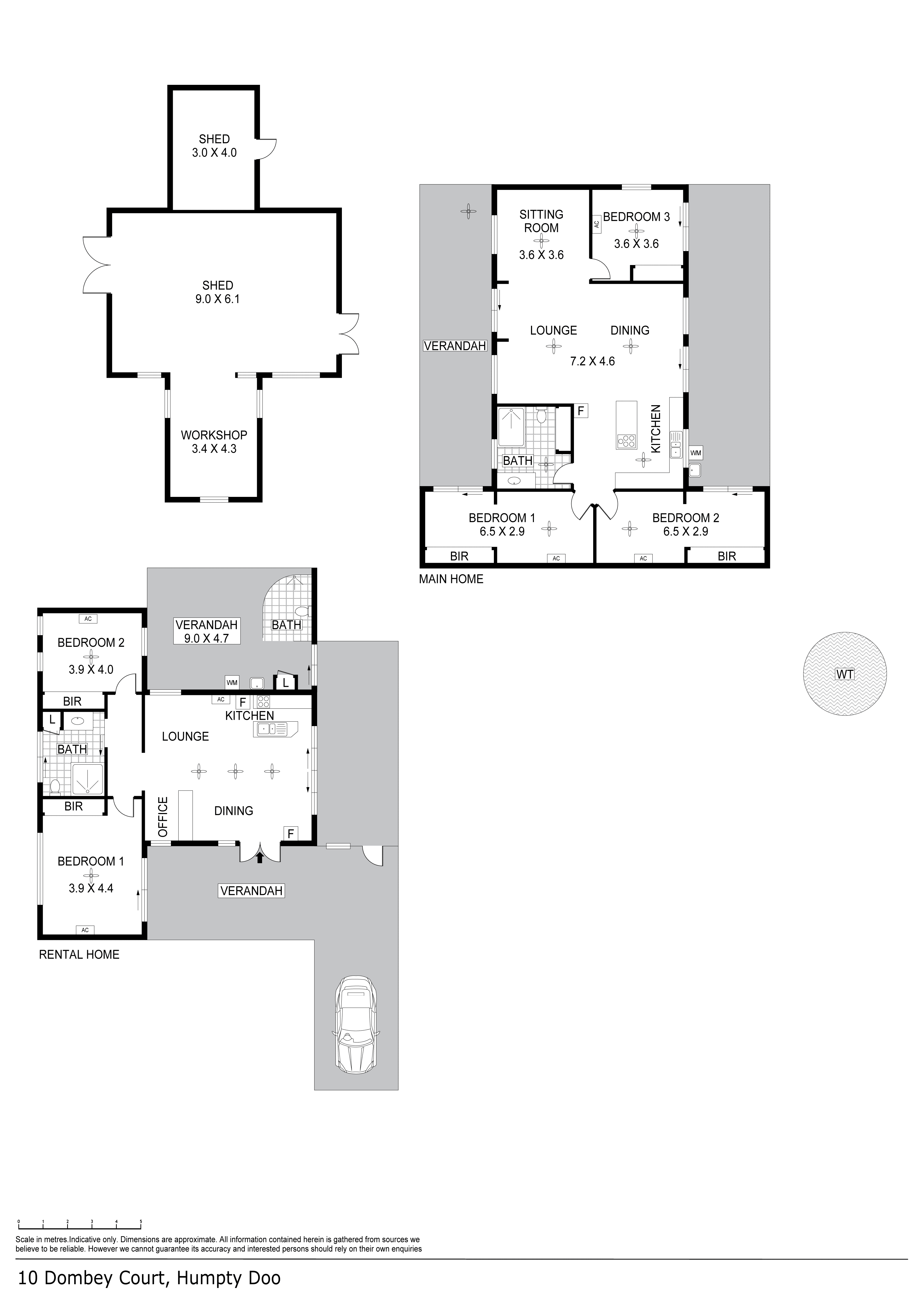 • Main home has 3 bedrooms, 2 with study room and sliding doors to the verandah