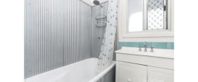 • Bathroom has a bath tub and shower with separate toilet