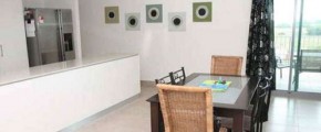The living area is very spacious with gourmet kitchen including a long breakfast bar that takes in the big harbour view through the glass doors that open onto the large covered balcony positioned wth a pleasant SOUTH WEST aspect avoiding the harsh tropical sun.