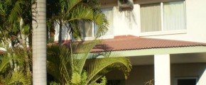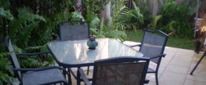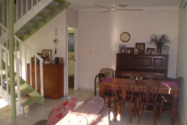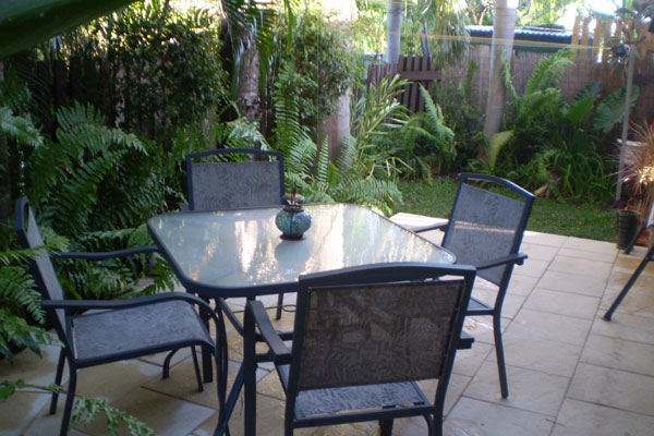 Fenced, low maintenance manicured courtyard with space for a spa. At the front is a double carport with covered dry entry for the wet season.