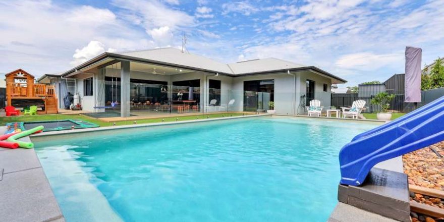 The outside of this home is magazine worthy with rolling green lawns and a built in trampoline with a glass framed swimming pool and easy care tropical gardens within the towering retaining wall with a native bushland belt on the other side. Each of the bedrooms is well equipped and the master suite of course has a walk in robe and ensuite bathroom.