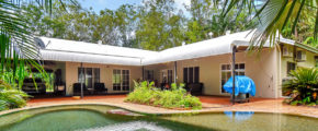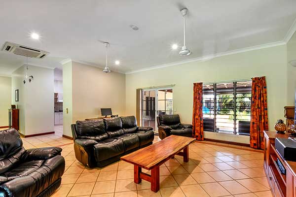 The home offers 4 bedrooms that each have A/C and a built-in robe along with large windows that frame the tropical greenery from outside. The master also enjoys a walk-in robe and en-suite amenities plus there is a study or small 5th bedroom option as well.