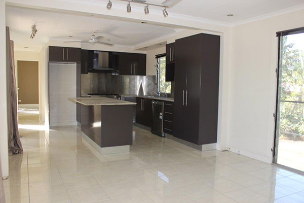 UPSTAIRS offers cool modern high gloss new tiles, new granite open plan kitchen with breakfast bar, stainless steel stand-alone 5 burner gas cooking range with extra wide oven, loads of stylish storage and fully equipped for the chef at heart or to cater for all your family celebrations.