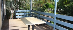 The list of features continues with a new separate bathroom and toilet with vanity, 2 double size bedrooms with new split air conditioners, new mirrored built in robes, elevated garden views, and large covered balcony looking over the crystal cool pool set in tropical paradise.