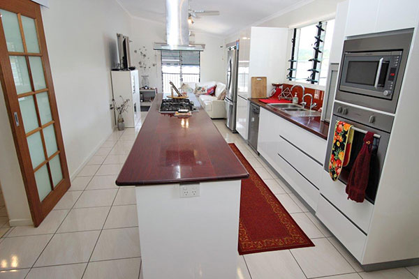INSIDE is an open plan lounge, dining and family room, gourmet state of the art kitchen, with hardwood timber bench tops, soft close draws and load of storage, a 2 door fridge with deep draw freezer, dishwasher, microwave, glasses, pots, pans, cutlery, you name it we’ve got it here. 2 double size bedrooms, 2 amazing bathrooms, main with separate bath and internal laundry. The ensuite again is way bigger than normal with granite vanity top and garden views.