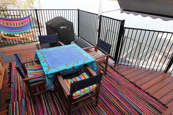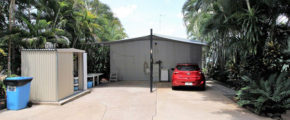 OUTSIDE is plenty of parking with the double carport covered with shade sail easily parking 3 cars, including a shed and covered verandah with BBQ, outdoor settings, plant pot racks, and adjustable shade blinds. Then the best keeps coming with an extra-large detachable catamaran aluminium pontoon that will never rot or rust, with permanent shade cover.