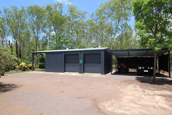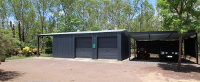 2 X DOUBLE CARPORTS + 12M X 6M POWERED & INSULATED SHED